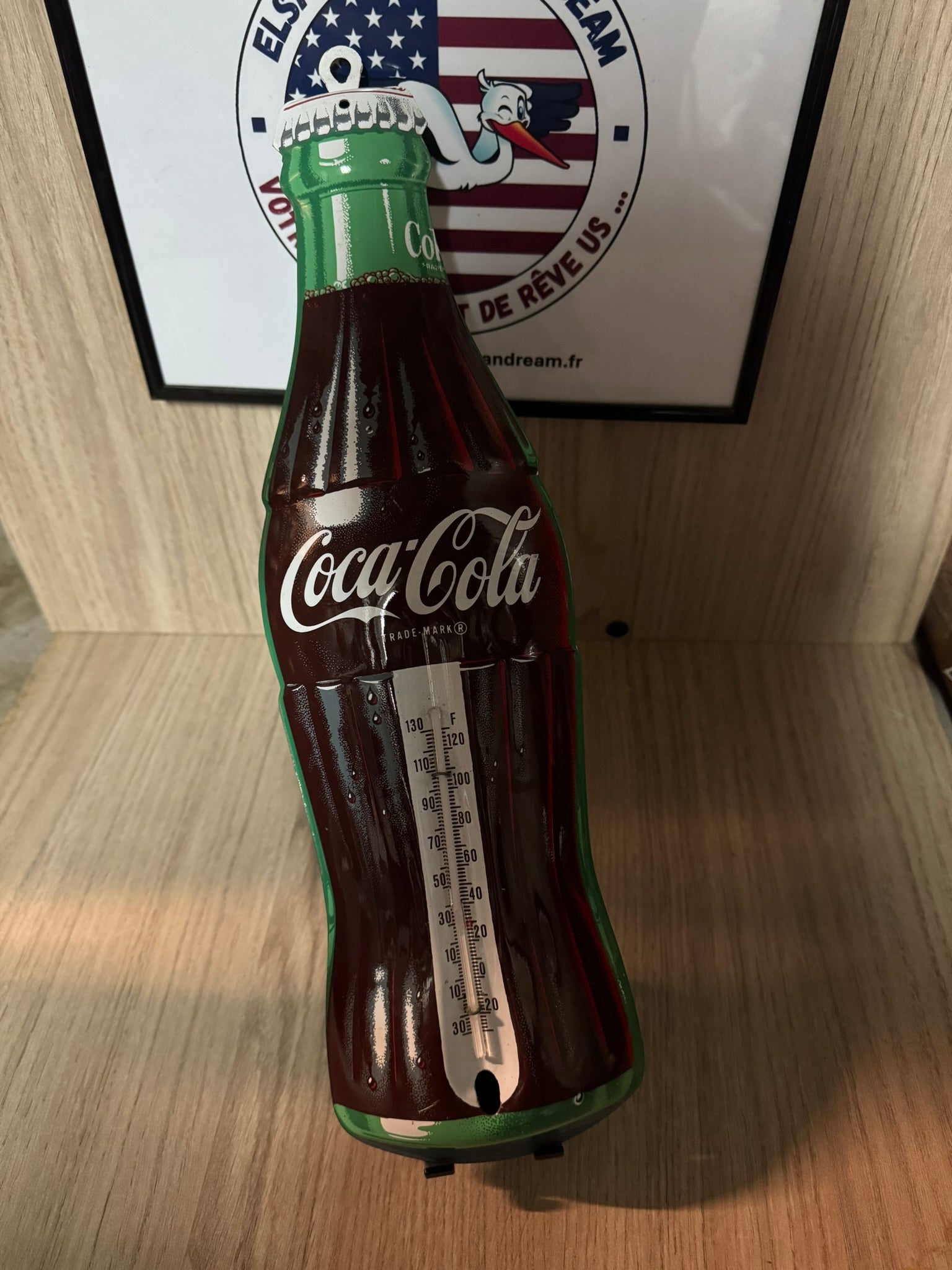 Plongez dans l’univers authentique du vintage américain avec ce thermomètre mural Coca-Cola en forme de bouteille iconique. Fabriqué dans un style old school, il reprend la silhouette classique des bouteilles en verre Coca-Cola, agrémentée d’un thermomètre en degrés Fahrenheit et Celsius, fonctionnel et lisible.